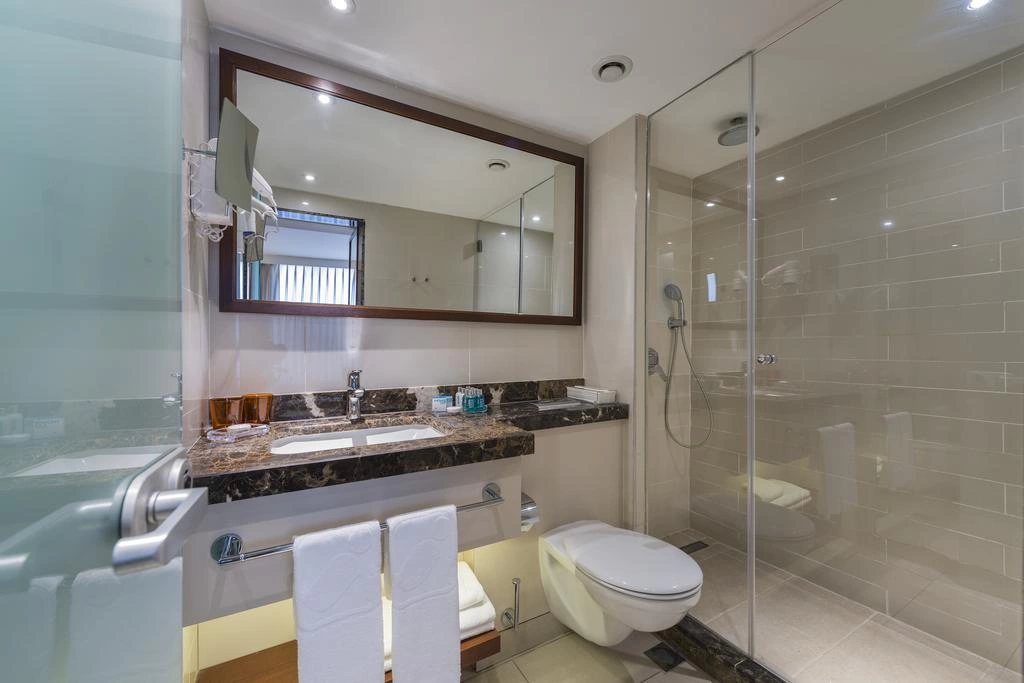 Спутниковое телевидение, кондиционер, мини-бар (платно), сейф (бесплатно), фен, телефон, балкон, Wi-Fi.