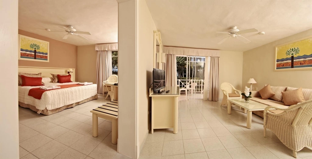 Кондиционер, потолочный вентилятор, LCD-телевизор со спутниковыми каналами, Wi-Fi (платно), сейф (бесплатно), телефон ( (внешние звонки платно), будильник, мини-бар c водой, безалкогольными напитками и пивом (бесплатно, ежедневное пополнение), набор для приготовления чая/кофе (в номерах Suite), утюг и гладильная доска, ванная комната, фен (бесплатно), банные принадлежности, увеличительное зеркало, халат и тапочки (в номерах Suite), полотенца для бассейна и пляжа в номере при заселении (в номерах Suite), балкон или терраса. Уборка номера: ежедневно, room service.