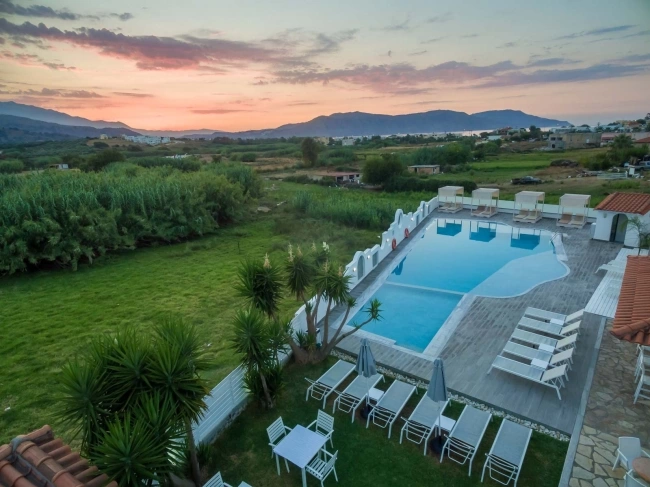 Готель Apollo Kavros Hotel розташований у мальовничому селі Каврос в 40 км від аеропорту м. Ханья, в 100 км від аеропорту м. Іракліон. До м. Георгіуполіс — 4 км, м. Ретімно — 15 км, м. Ханья — 35 км, автобусна зупинка в 200 м (регулярне автобусне сполучення до Ханьї і Ретімно). Готель розташований в 350 метрах від пляжу Каврос та складається з трьох комплексів двох і триповерхових будівель Apollo I, Apollo II і Apollo Apartments. Сучасний комплекс має три відкриті басейни, дитячий басейн, дитячий ігровий майданчик, кінотеатр, затишний бар біля басейну, ресторан.