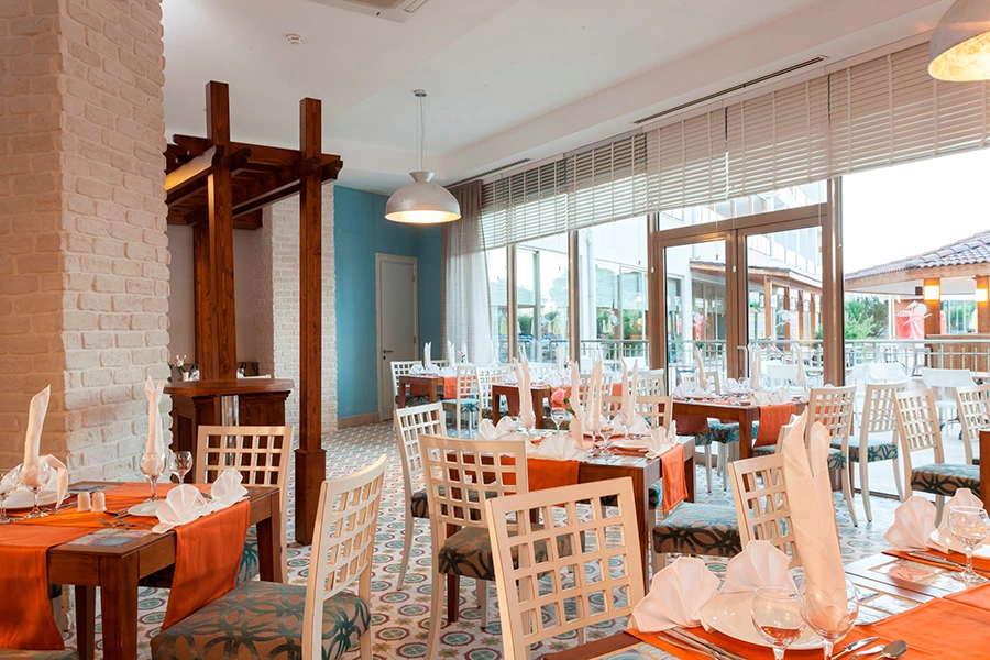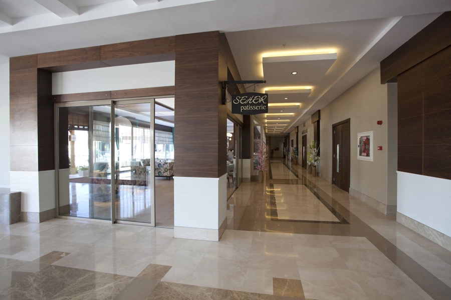 Wi-Fi безкоштовно (на території готелю), 3 ресторани — 1 основний, 2 a la carte (османський і рибний, за попереднім записом, за тиждень проживання відвідування одного ресторану — безкоштовно), 5 барів, 4 конференц-зали, магазини, 3 басейни — відкритий басейн, басейн з гірками, 3 гірки (c 01.05 по 31.10), критий басейн з підігрівом за погодними умов