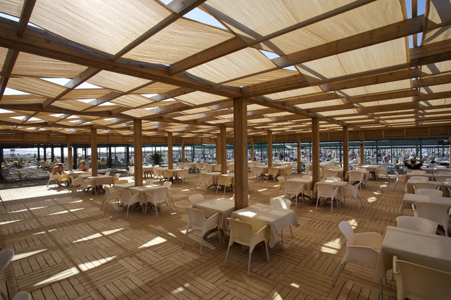 В 300 м від готелю. Між готелем і пляжем проходить променад. Протяжність пляжу — 300 м. Захід у море — пісок. Пляжні рушники — безкоштовно (заміна платно). Бар на пляжі безкоштовно (працює з 01.05 по 31.10), душ, кабіни для переодягання.