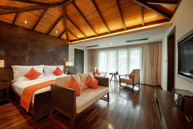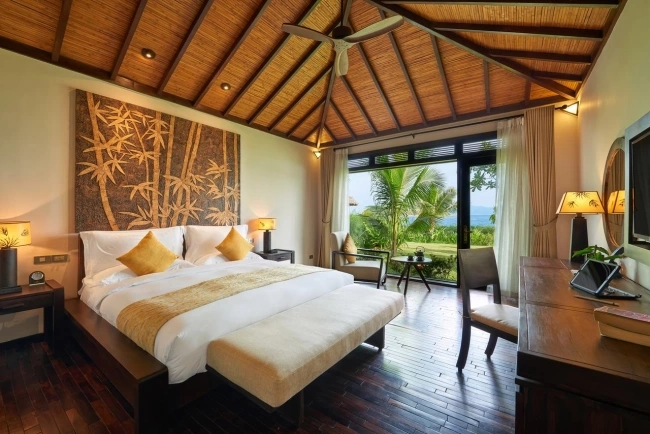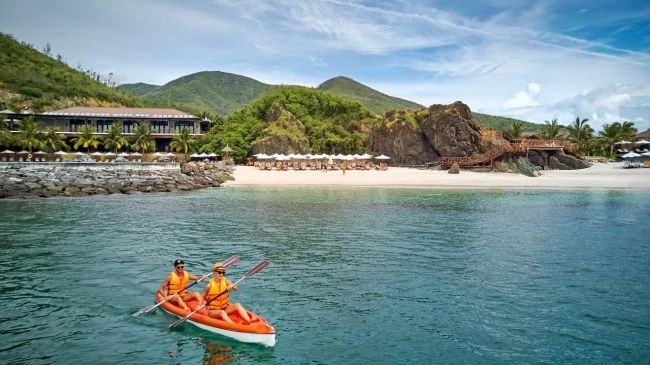 В 10 минутах езды от центра г. Нья Чанг. В 35 минутах от аэропорта Камрань. 4 раза в день ходит бесплатный автобус в центр города.