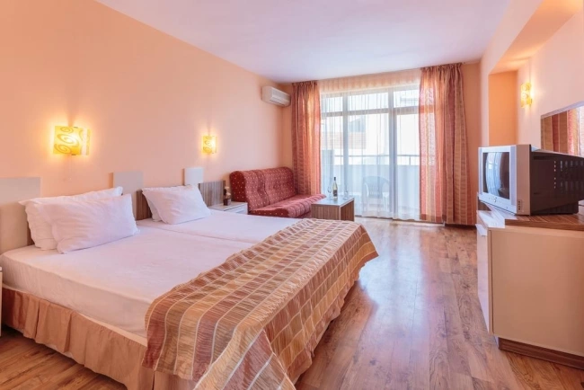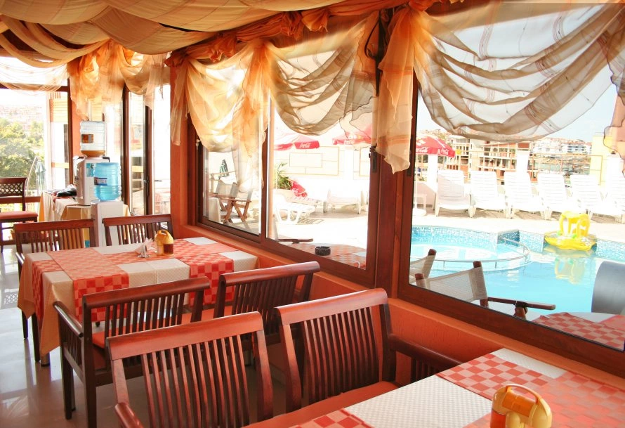 Ресторан болгарської та європейської кухні, тераса. Цілодобова стійка реєстрації гостей, доставка їжі і напоїв в номер, факс/ксерокопіювання.