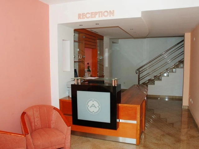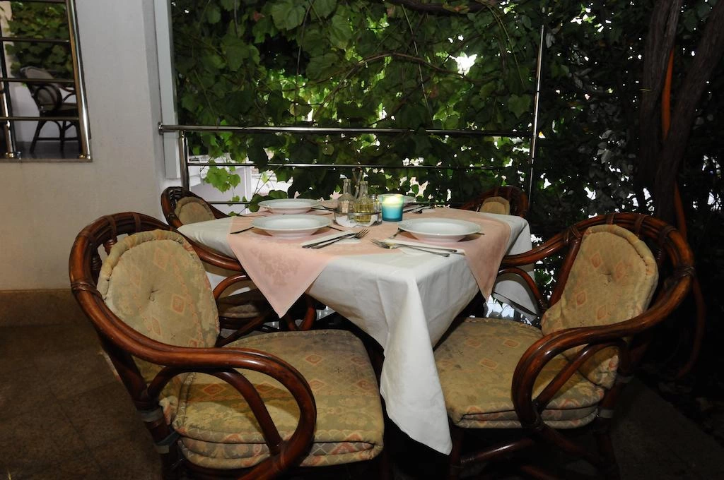Ресторан під навісом з виноградної лози, 60 місць, працює з 7 до 22 годин. Гараж на цокольному поверсі. Літня тераса, камера зберігання багажу.