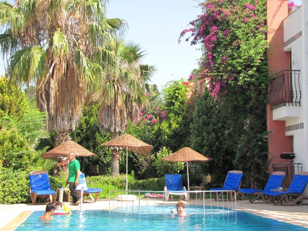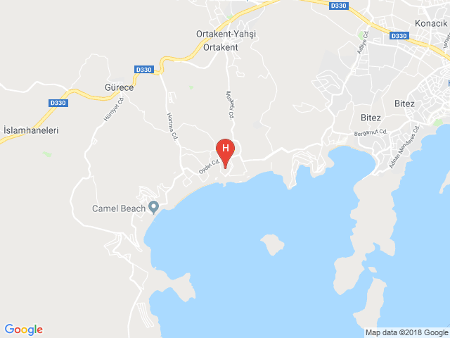 Около 13 км от центра Бодрум, в спокойной части местности Ортакент; около 40 км от аэропорта Бодрум-Милас; около 100 м от остановки местных мини-автобусов, каждые 30 мин. отправляется автобус в центр Бодрум.