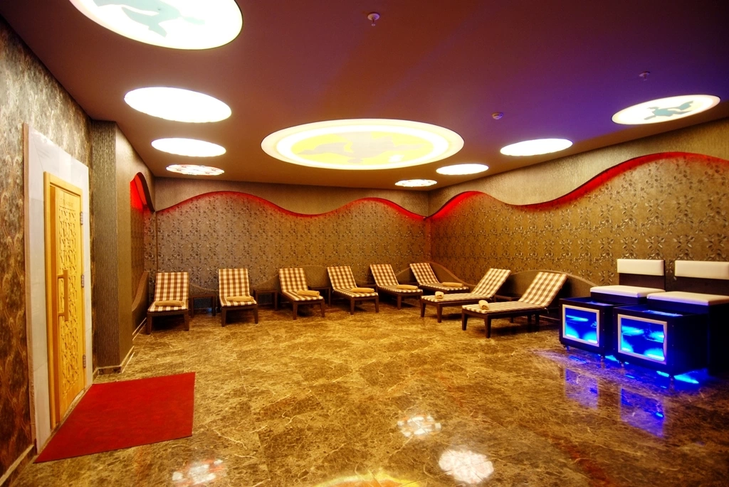 Основний ресторан, ресторан A la Carte, 6 барів. 2 відкритих басейни з прісною водою, без підігріву, площі: 500 кв. м і 350 кв. м. Критий басейн без підігріву.