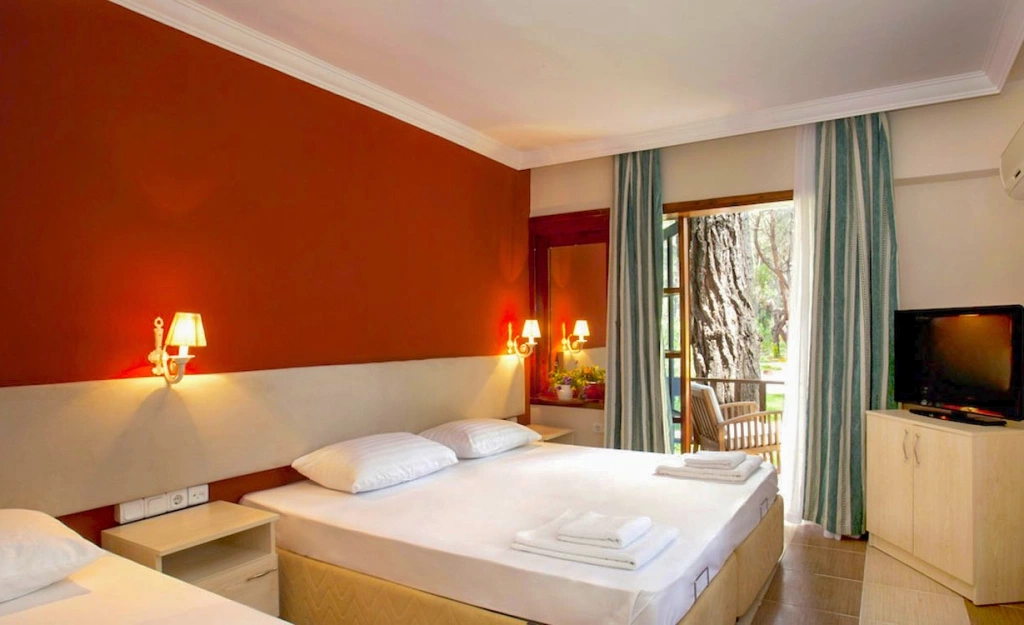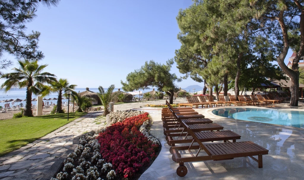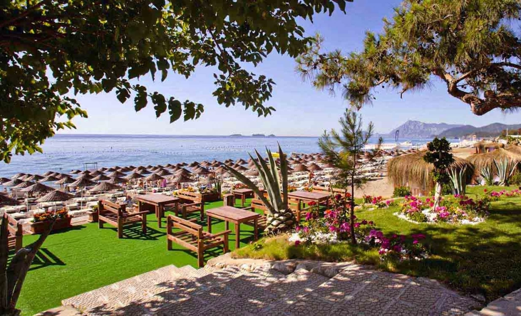 В 70 км від аеропорту р. Анталія, в 20 км від р. Кемер, в селищі Текірова, на самому березі моря.