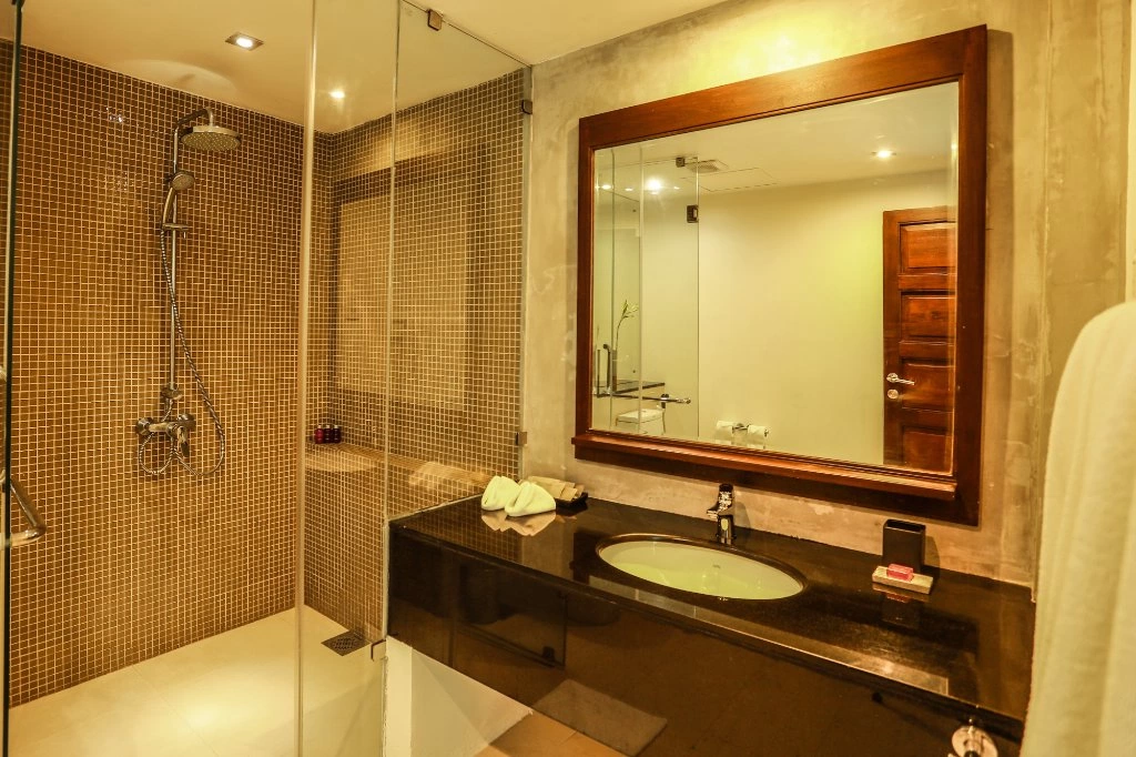 Сейф (бесплатно), кондиционер, потолочный вентилятор, Wi-Fi (бесплатно), телефон, телевизор, CD/DVD-проигрыватель (по запросу, бесплатно), утюг и гладильная доска: по запросу, бесплатно, мини-бар (платно), набор для приготовления чая/кофе, ванна (только в Suite), душ, фен, халаты и тапочки, балкон или терраса, room service: круглосуточно, уборка номера: ежедневно.