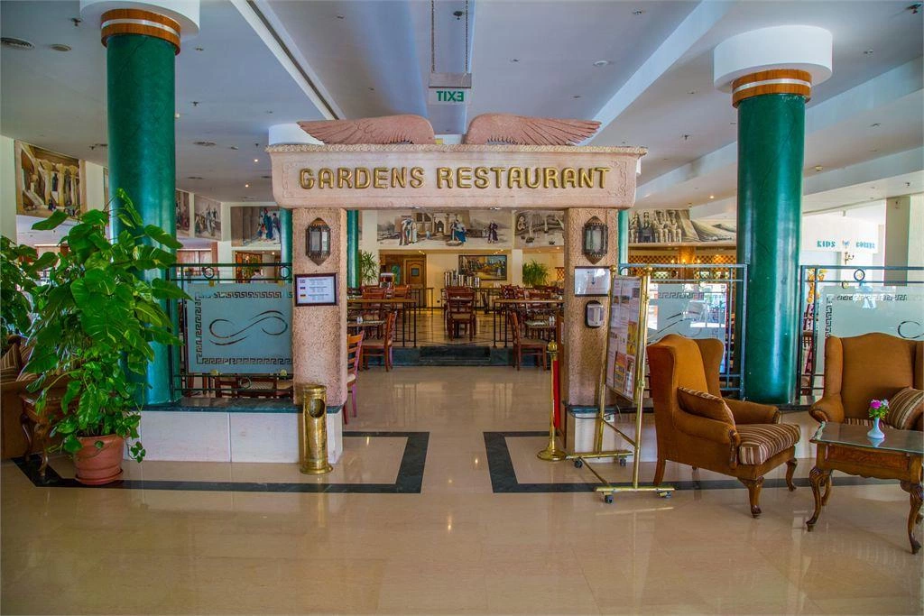 Ресторани: Головний ресторан White Knight – критий, є дієтичне меню. Ресторани a la Сarte (по резервації): Італійський ресторан La Trattoria (19:00 – 22:00), 110 місць, критий, з терасою. Fatima (східна кухня), 80 місць, на терасі (12:30 – 15:00 – шведський стіл, без резервації, 19:00 – 22:00 – по меню a la Сarte, по резервації, платно). Рибний рес