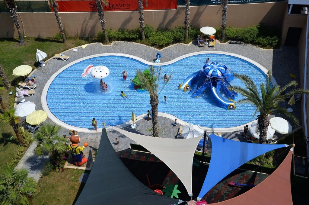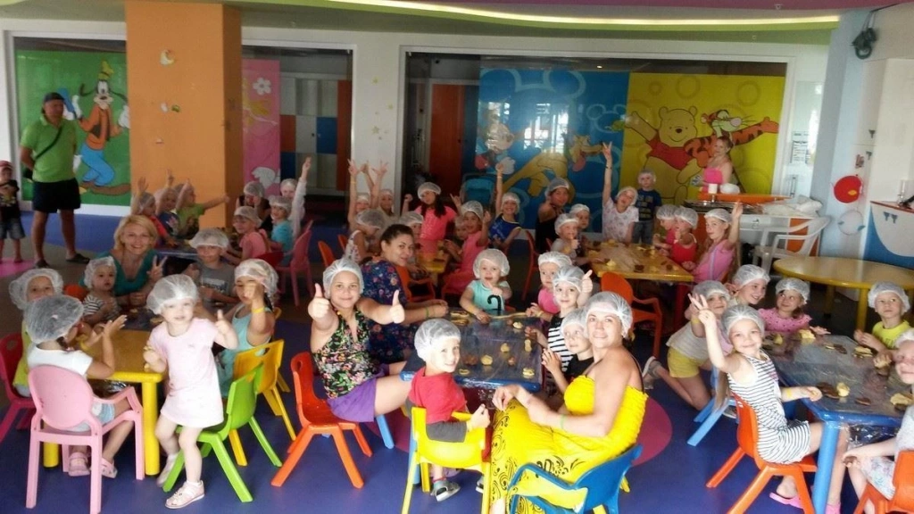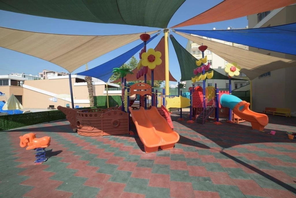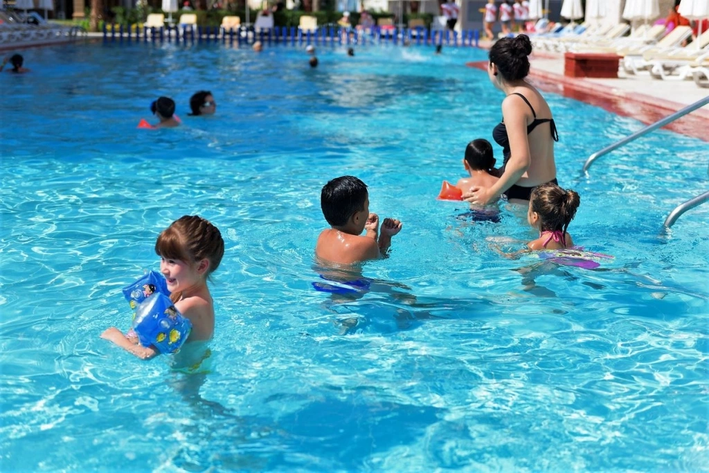 2 відкритих басейну (46 і 27 м2) і 1 критий басейн (10 м2), 5 водних гірок, дитяча анімація (російською мовою), міні-клуб для дітей у віці від 3 до 10 років, години роботи 10:00-12:30 і 14:00-17:00, міні-диско, міні-зоопарк (безкоштовно). Дитячі горщики (безкоштовно, за запитом, за наявності), прокат дитячих колясок (платно). В основному ресторані