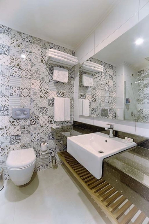 Индивидуальный кондиционер (в эко стандарт, центральный в делюкс), телевизор, спутниковое ТВ, прямой телефон (платно), сейф (платно), Wi-Fi (только в номерах Deluxe — платно), мини-бар (только вода — бесплатно, ежедневное пополнение), электрический чайник и набор для приготовления чая/кофе, ванная комната, фен (бесплатно), балкон. Уборка номера, смена белья и смена полотенец: 3 раза в неделю.