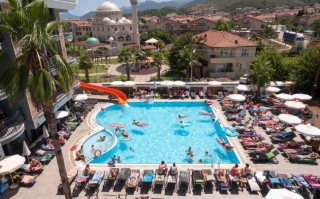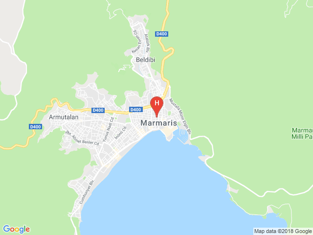 В 90 км от аэропорта г. Даламан, в 1,5 км от центра г. Мармарис, в п. Армуталан.