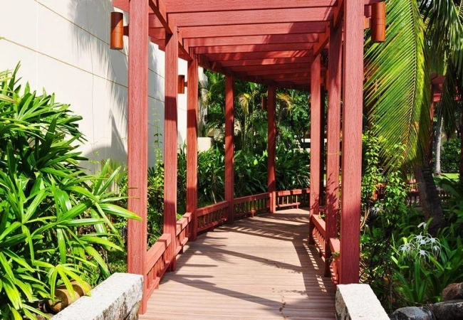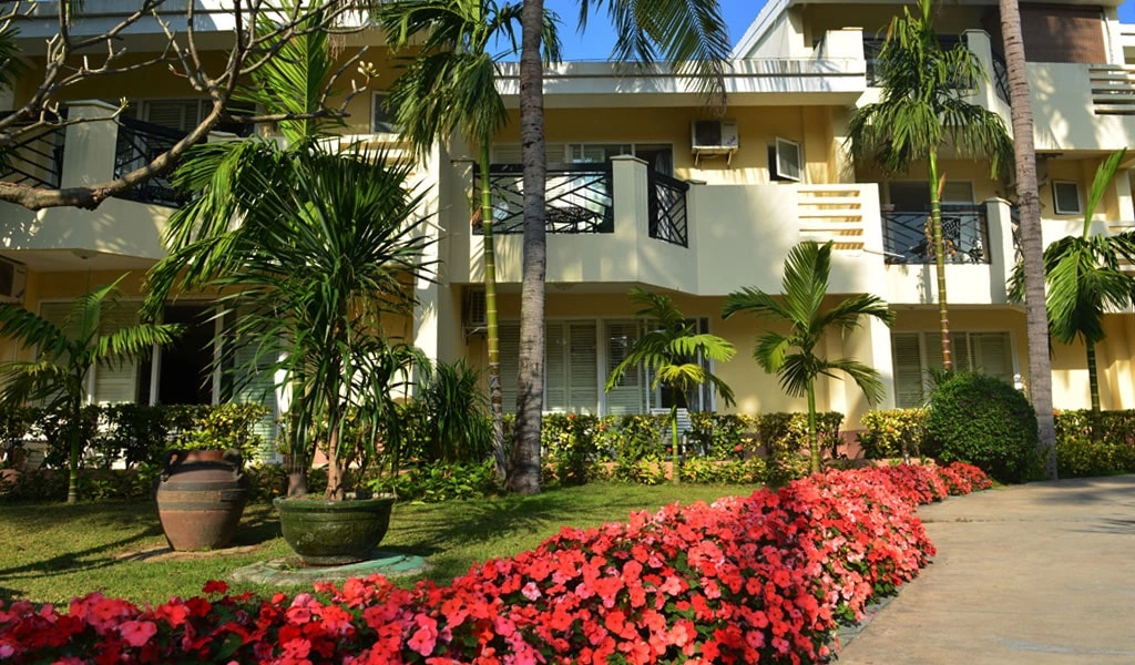 Готель розташований в бухті Санья, в 8 кілометрах від центру міста, поруч з магазинами і ресторанами. Побудований в 2001 році, остання реставрація проведена в 2013 році. Загальна площа території готелю становить 38 000 квадратних метрів, по території курсують електро-машинки. Готель знаходиться далеко від розваг і підійде як бюджетний варіант для спокійного розміреного відпочинку.
