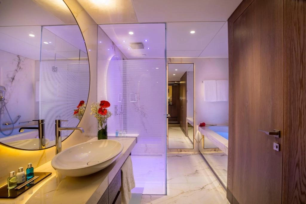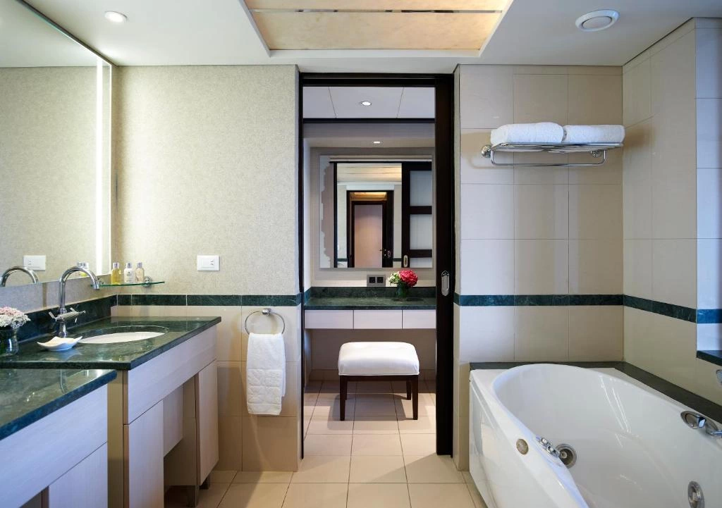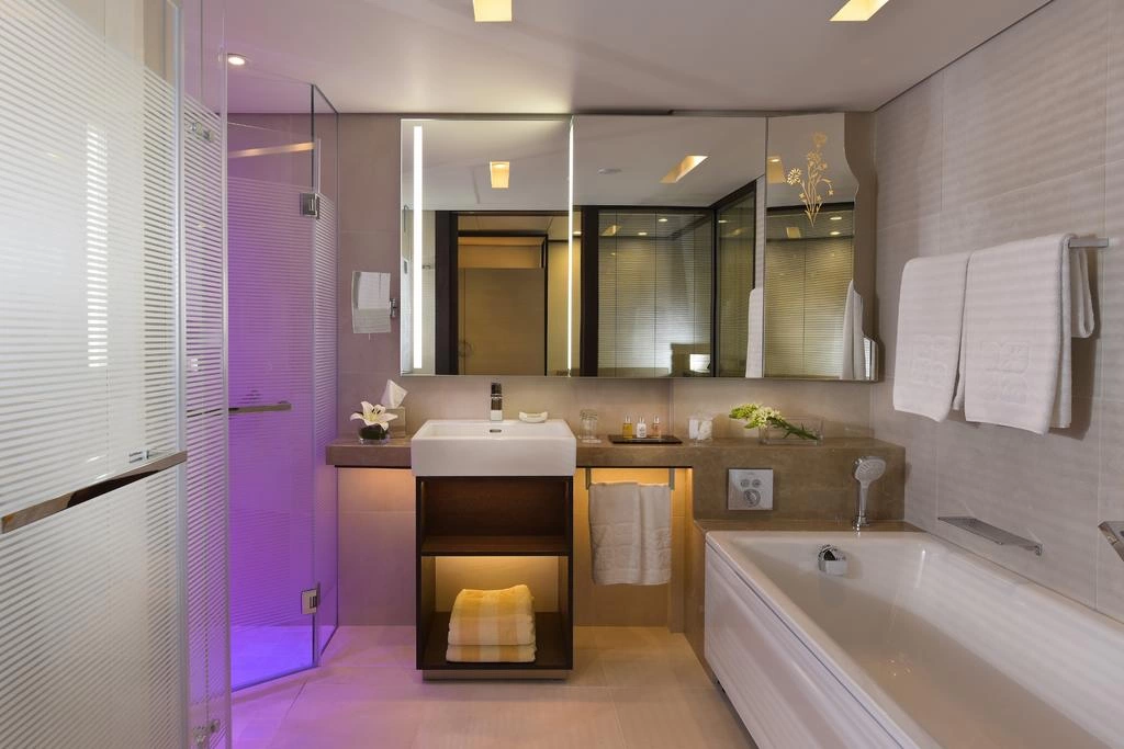 Номера, номера-студио и люксы отеля Four Seasons элегантно меблированы и укомплектованы ЖК-телевизором со спутниковыми каналами, сейфом для ноутбука и принадлежностями для кофе. В облицованной мрамором ванной комнате предоставляются туалетно-косметические принадлежности марки Molton Brown. В большинстве номеров можно выйти на отдельный балкон.