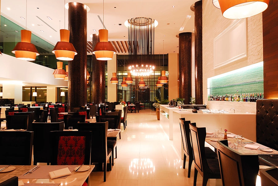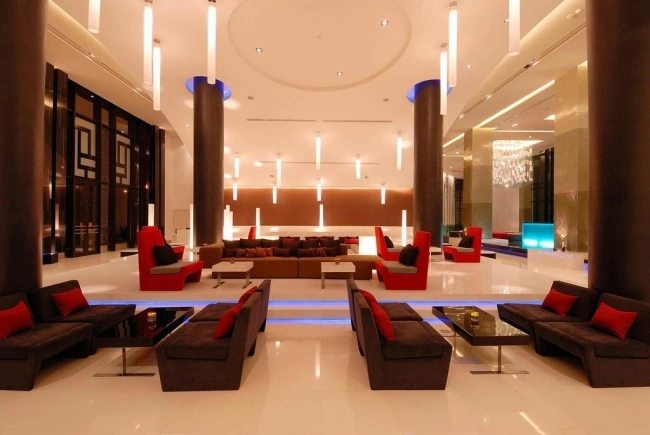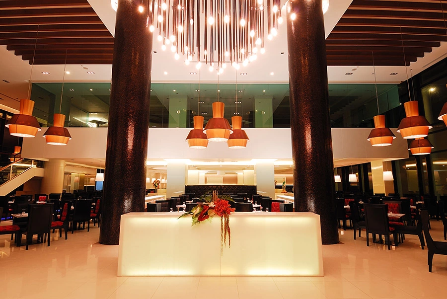 Цілодобова стійка реєстрації гостей, room service: цілодобово, Wi-Fi в лобі (безкоштовно), TV зал, 7 конференц-залів, 4 ресторани — міжнародна, азіатська кухня, морепродукти (3 a la carte платно), 2 бари, 2 відкритих басейну з прісною водою (з джакузі), години роботи з 07:00-23:00, біля басейну парасольки, шезлонги, рушники: безкоштовно.