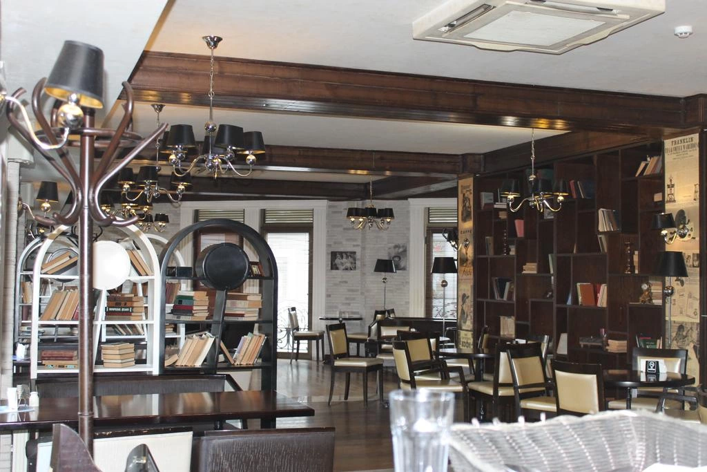 Цілодобова стійка реєстрації, грузинський ресторан «Міміно», європейський ресторан Marco Polo, кафе La Brioche та ірландський паб Quiet Woman.
