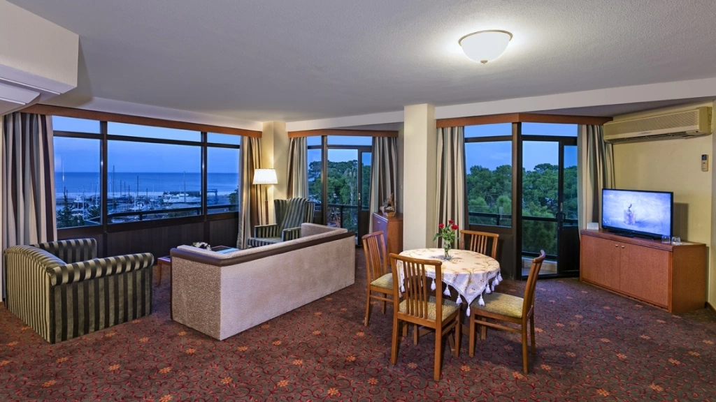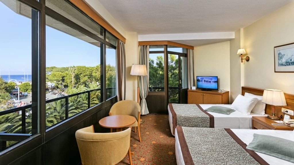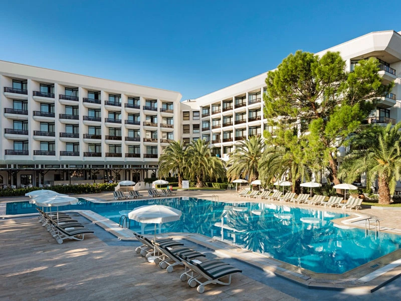 В 55 км от аэропорта г. Анталья, в г. Кемер.
