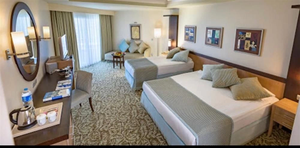 Номера с современным дизайном, с системой блокировки карт, мини-баром, электронным сейфом, телевизором, телефоном, душем / туалетом, феном, сплит-системой. Пол комнаты покрыт ковром.