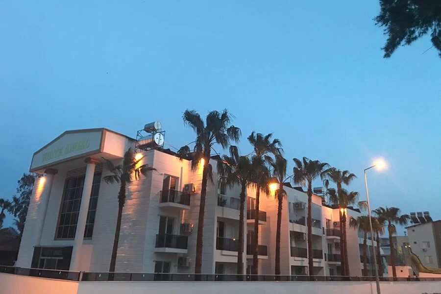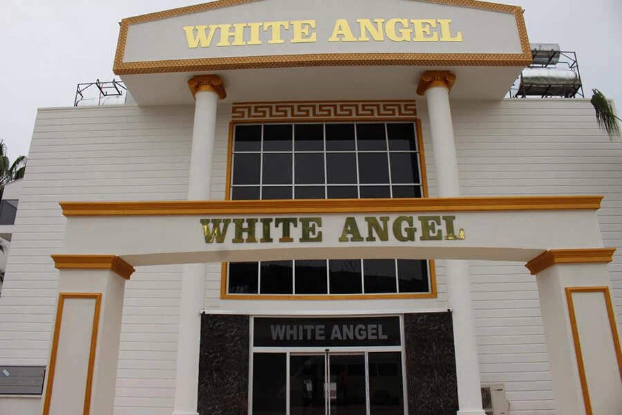 Готель White Angel був відкритий в 2019 році. Він знаходиться в 30 км від центру Анталії, в 25 км від аеропорту і в 7 км від центру міста Белек. Відстань до моря 950 м. У готелі є приватний пляж і безкоштовний трансфер до пляжу. Протяжність пляжу — 500 м. До послуг гостей відкритий ресторан, ресторан-бар і вітамін-бар, у SPA-центрі є турецька лазня, сауна і масажний кабінет 1 відкритий басейн, 2 гірки і 1 дитячий басейн. Для молодят надається вітальний комплімент у вигляді фруктів і вина.