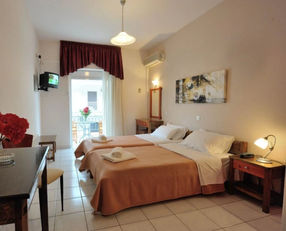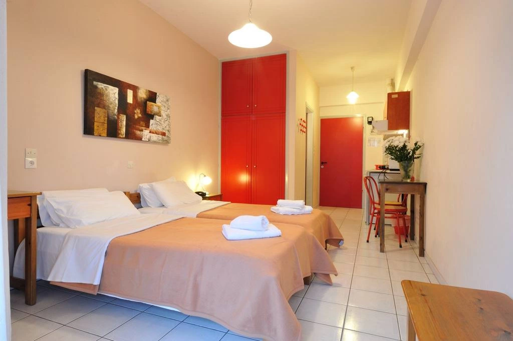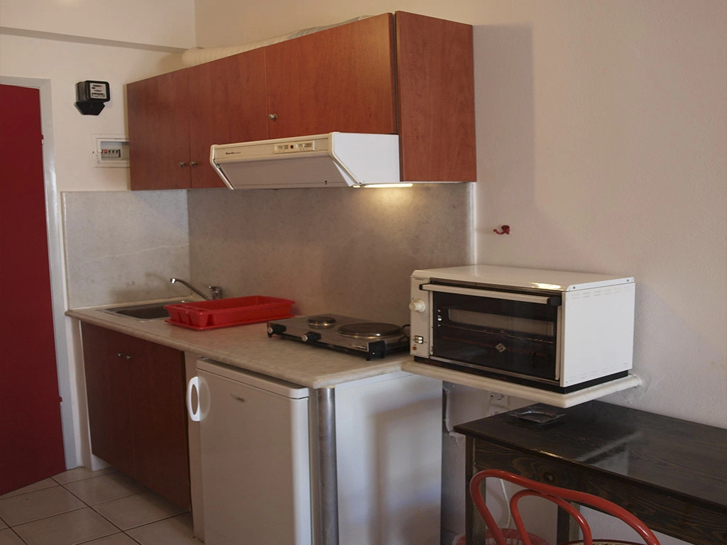 Кухонный уголок (духовка, электроплитка на 2 комфорки, вытяжка, СВЧ-печь), холодильник, ванная комната (душ), полотенца, туалетно-косметические принадлежности, фен, телевизор, бесплатный Wi-Fi интернет, телефон, балкон, пол — плитка, ежедневная уборка номеров, смена белья -2/3 раза в неделю.