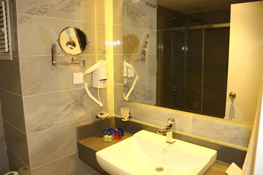 Центральный кондиционер (работает в зависимости от погодных условий), спутниковое телевидение, мини-бар (безалкогольные напитки и вода, пополнение ежедневно), прямой телефон, Wi-Fi (бесплатно до 50 Mb), душ, фен, сейф (платно), балкон.