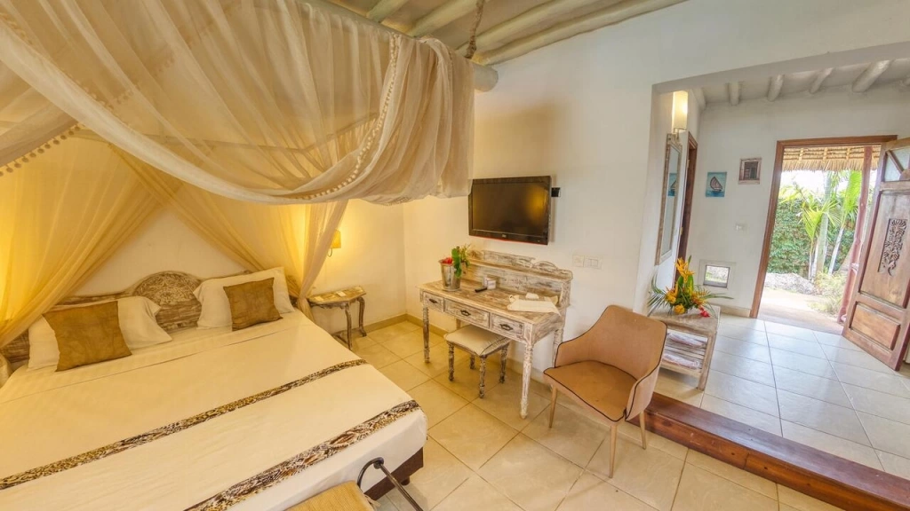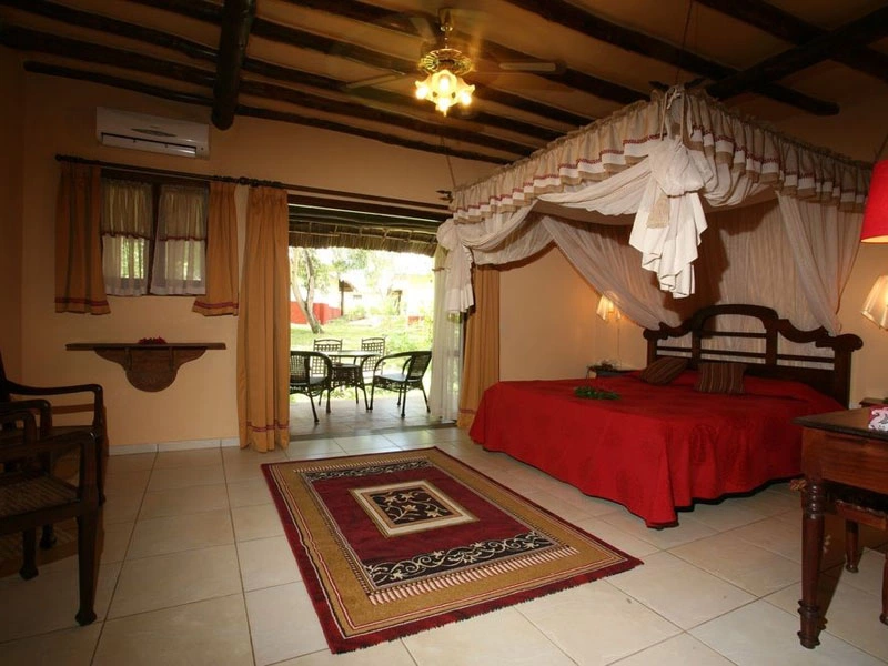 Ванная комната, халаты, веранда со столом и стульями, потолочный вентилятор, кондиционер, москитная сетка, холодная и горячая вода, фен, телефон, телевизор, мини-бар, принадлежности для чая и кофе, сейф, Wi-Fi.