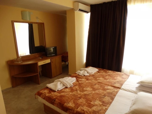 Готель розташований в парку, на третій лінії від моря, в південній частині курорту, в 500 м від центру. Реконструйований в 2013 році. Являє собою 11-ти поверхова будівля.
