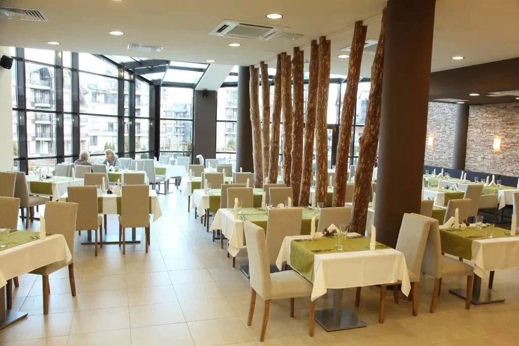 Ресторан Аспен Гольф. Ресторан-люкс з садом і видом на гори Пірін; пропонує інтернаціональну кухню і добірні напої; 120 місць. Бар Аспен Гольф. Бар і лаундж-сектор з каміном і приємною музикою; 50 місць. Тераса, доставка їжі і напоїв в номер, цілодобова стійка реєстрації, камера зберігання багажу, послуги з прасуванню одягу, чищення взуття, прес дл