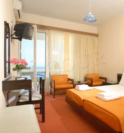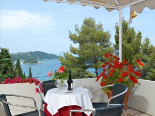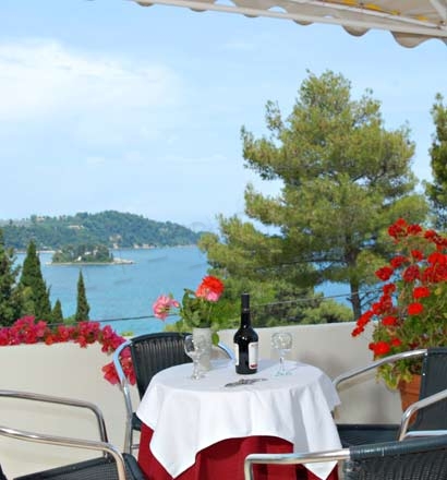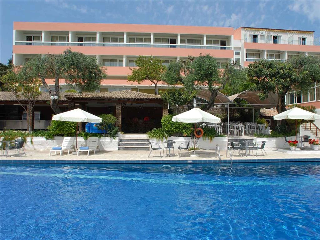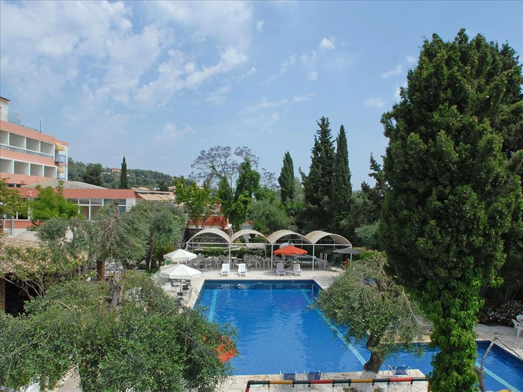 Басейн оточений високими деревами. Тут є сонячна тераса і дитячий басейн. В Alexandros також є мебльована тераса з видом на острівець Понтикониси.