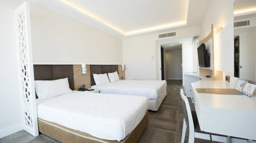 Сніданок 07:30-10:00, пізній сніданок 10:00-10:30, обід 12:30-14:00, вечеря 19:00-21:00, пізній вечеря з 22:00-22:30. Шведський стіл. Закуски в Снек ресторані 11:00-16:00. Чай/кава/випічка 17:00-17:45. A la Carte ресторан Selcuk Bey, години роботи з 19:00-21:00. Необхідна попередня резервація. Можливо одне безкоштовне відвідування готелю (раз в ти