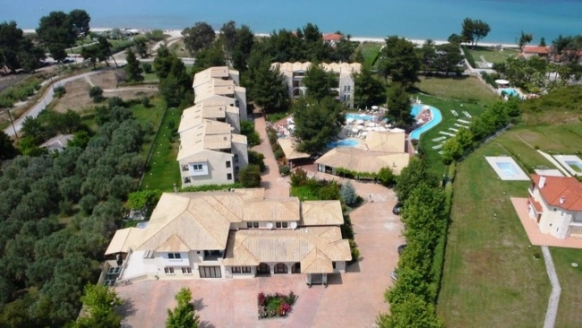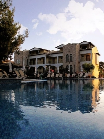 Пляж в 80 м від готелю, через ґрунтову дорогу, відзначений Блакитним прапором ЄС.