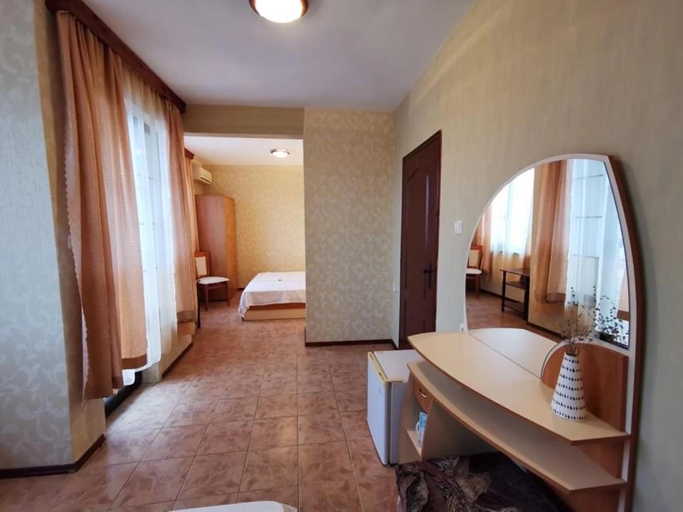 Отель расположен в новой части города в 300 м от центра — площади «Черное море» и в 250 метров от пляжа Хармани. Небольшой уютный отель, подойдёт для семейного отдыха. 5-ти этажное здание, лифта нет. Территорией отель не располагает, бассейна нет. Напротив отеля детская площадка. На 1-м этаже есть ресторан «Kaliana».
