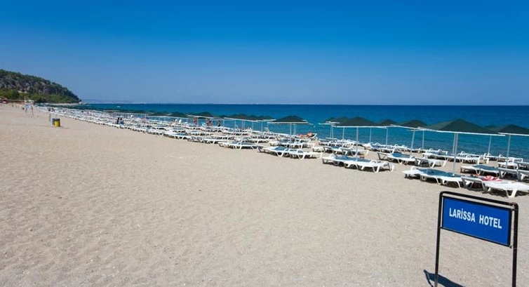 У 150 м від готелю. Між готелем і пляжем проходить дорога і променад. Протяжність пляжу — 400 м.