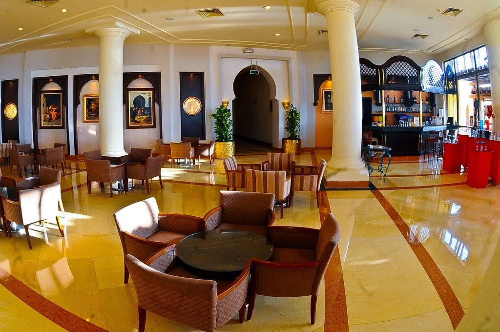 3 ресторани з них 2 ресторани A la Carte: Головний ресторан Sea Club: сніданок, обід і вечеря (все включено), A la Carte: Il Pescatore — міжнародна кухня, French Restaurant — французька кухня, 5 барів (бар на пляжі 10:00 до заходу сонця, біля басейну 10:00 до заходу сонця, в лобі 24 години, Baracuda бар 18:00-23:00 і бар на дискотеці 23:00 till 02: