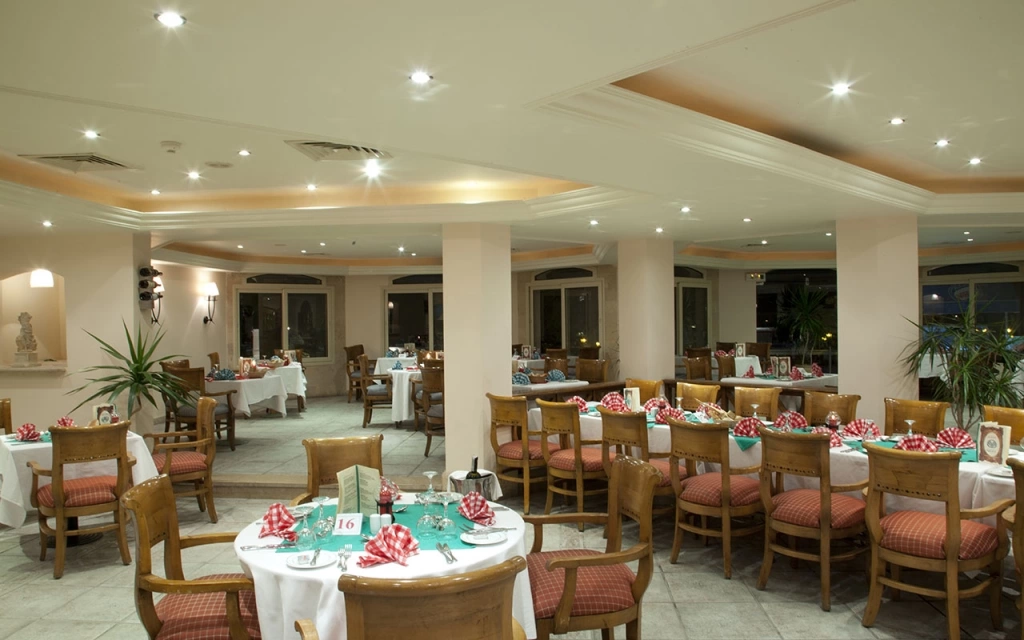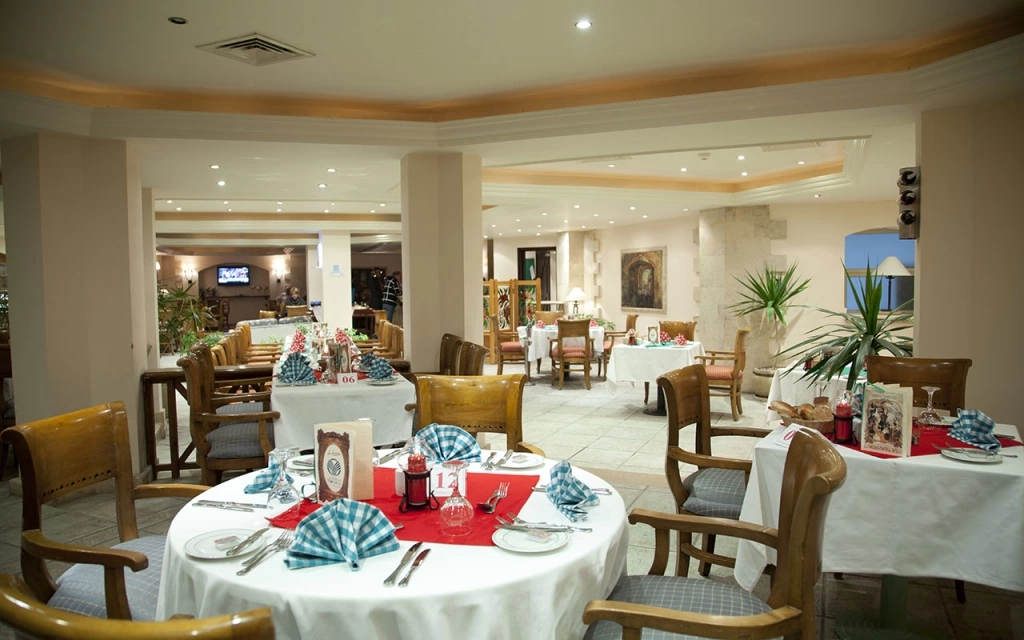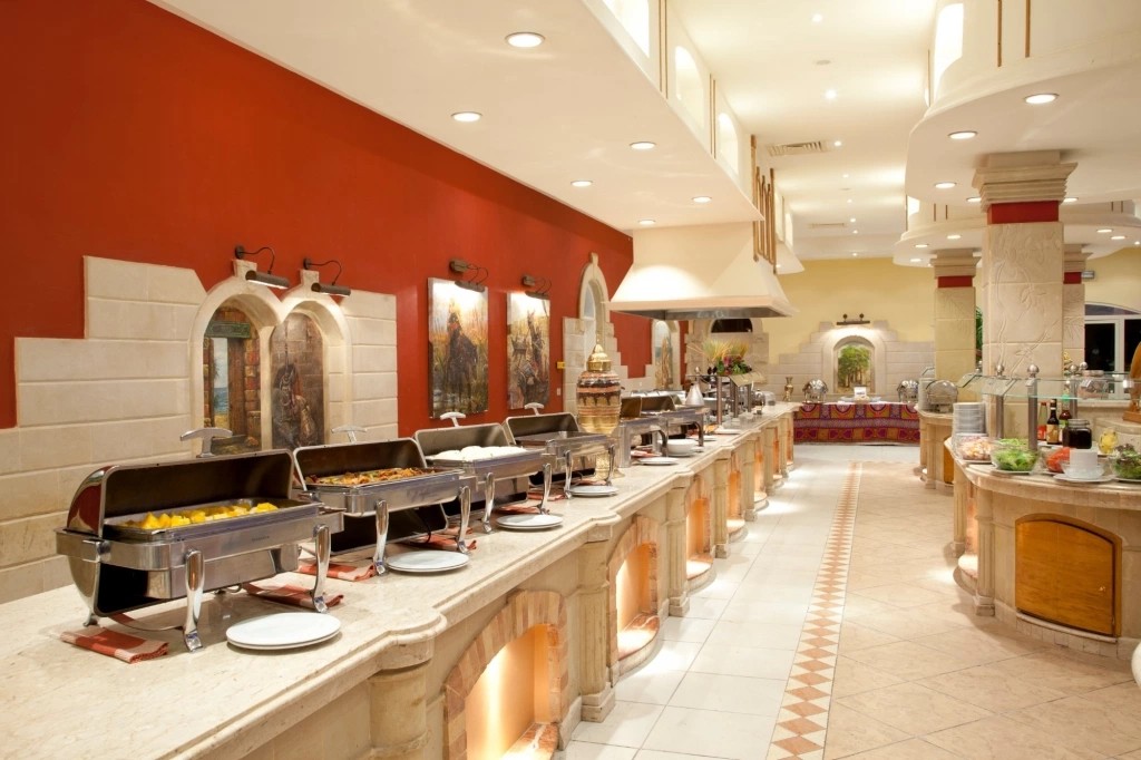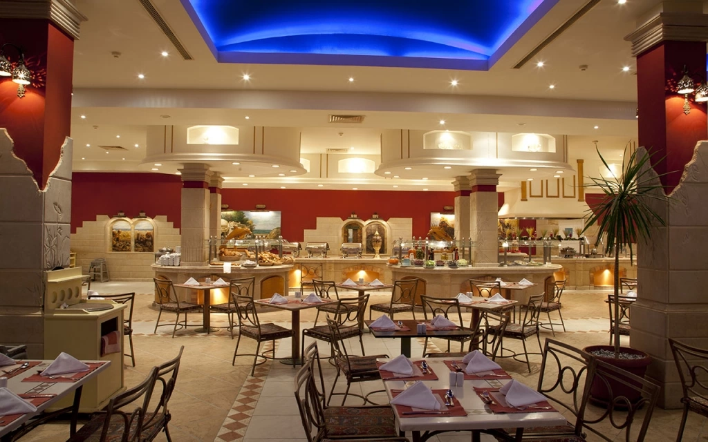 Ресторани: Головний ресторан Mermaid Ресторани A la Carte (платно): Andiamo – італійська кухня (19:00 – 22:00; у рамках AI 1 безкоштовне відвідування за попередньої резервації) El Falaha – східна кухня (19:00 – 22:00; у рамках AI 1 безкоштовне відвідування за попередньої резервації) Atlantis – мореподукты (10:00 – 22:00) Бари: Бар на пляжі (10:00