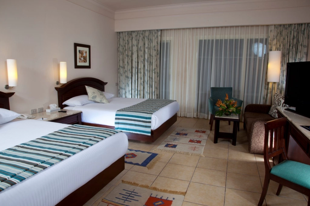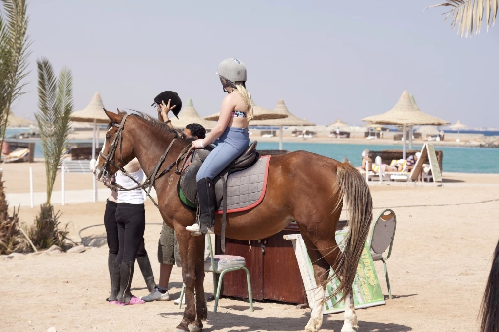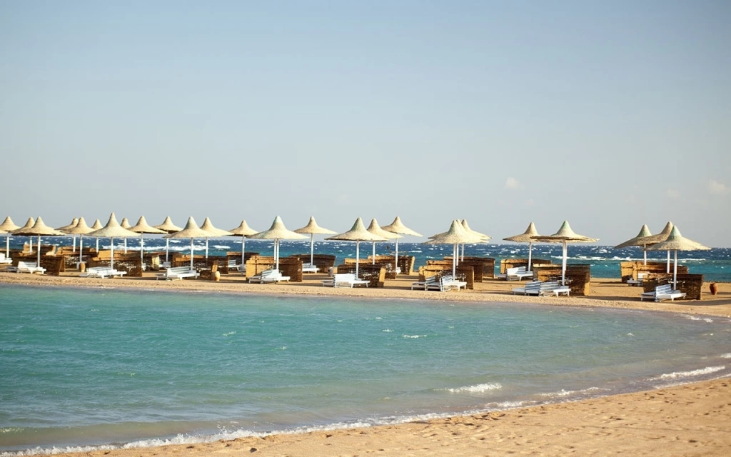Є корали. Вхід в море тільки з понтона (довжина 50 м). Рекомендується спеціальне взуття. Пляжні рушники видаються за картками. Пляж через дорогу, з основної будівлі прохід на пляж через тунель.