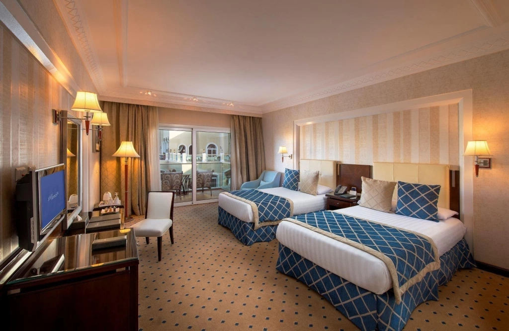 Кондиционер (только охлаждение), ванная комната с душевой кабиной или ванной, банные принадлежности (мыло, шампунь и гель для душа), фен (бесплатно), халат и тапочки (бесплатно), ЖК-телевизор, спутниковое телевидение, сейф (бесплатно), Wi-Fi (бесплатно), кабельный интернет (бесплатно), телефон (платно), мини бар (бесплатно, пополняется 3 раза в неделю), электрический чайник и набор для приготовления чая и кофе (бесплатно), утюг и гладильная доска (бесплатно), балкон или терраса. Уборка номера: ежедневно, смена белья: ежедневно, room service (платно).