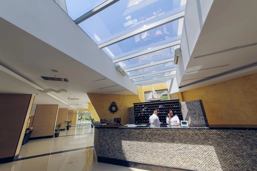 Основний ресторан відкритий з 07:00 до 23:00. Сніданок і вечеря - шведський стіл. Аперитив-бар. Буфетна стійка біля басейну. Басейн площею 150 кв. м. Тераса, сніданок в номер, цілодобова стійка реєстрації гостей, обслуговування номерів, пральня, сувенірний магазин, запаковані ланчі, міні-маркет.