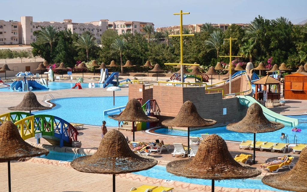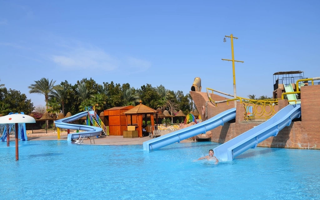 В аквапарку: 25 гірок (9 гірок для дорослих, 16 гір і водних атракціонів для дітей), 7 басейнів, 2 басейну аквапарку з підігрівом в зимовий період (1 дорослий, 1 для дітей). Пляжний волейбол (безкоштовно, у Parrote Beach), настільний футбол (безкоштовно), більярд (платно), сауна і парна платно (з 16 років), масаж платно (з 16 років), тренажерний за