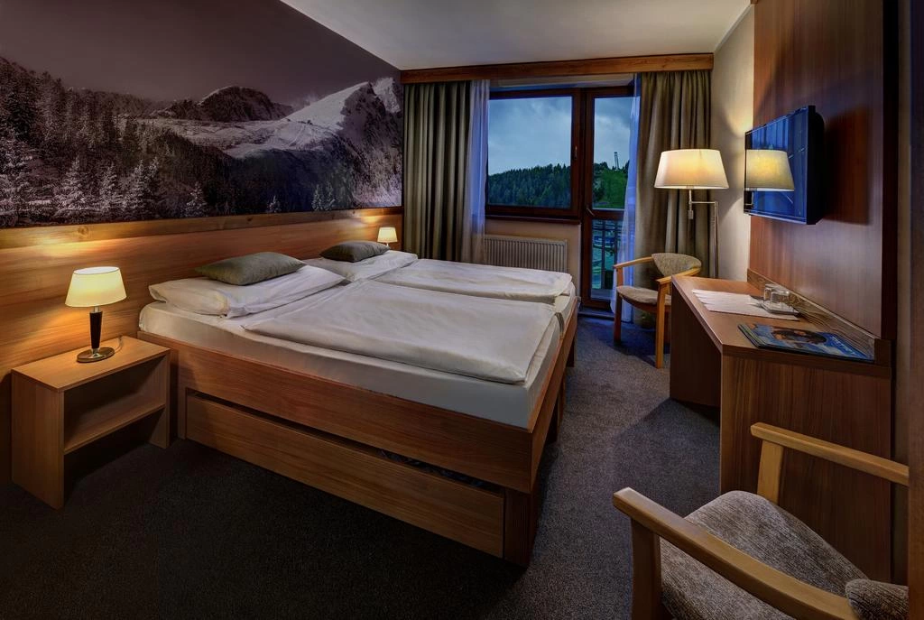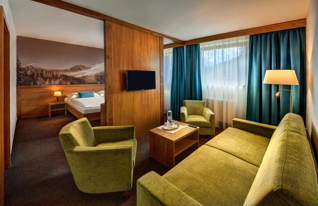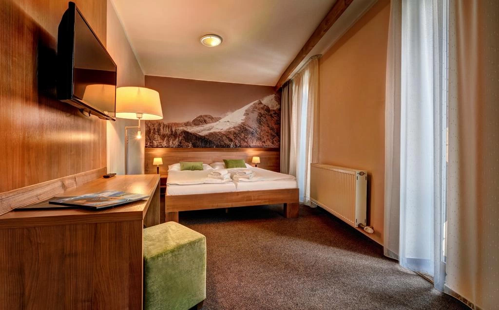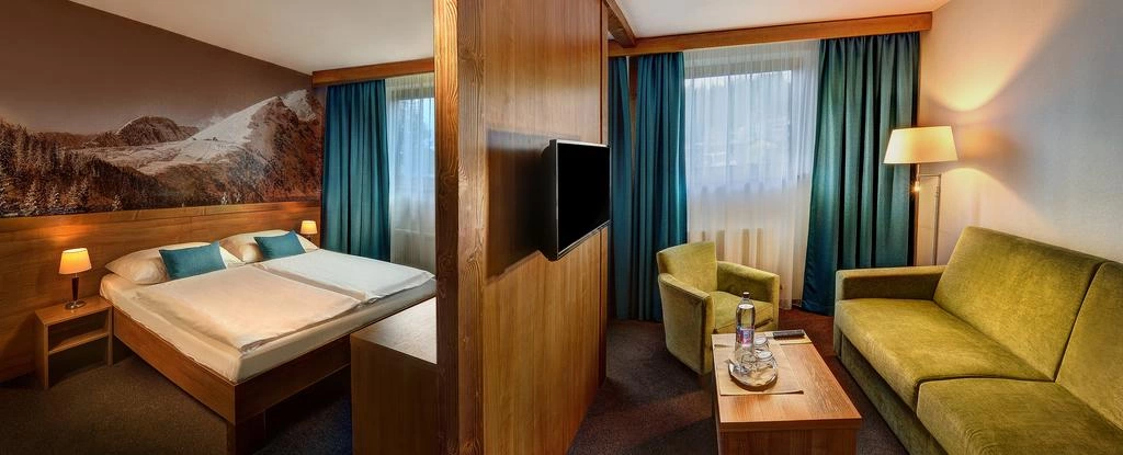 Основний ресторан, ресторан «Štrbská izba» словацької кухні, кафе з денним баром, кондитерська «Algida». Сніданок з 7:00 до 10:00) і вечеря (з 18:00 до 21:00) - шведський стіл. Конференц-зал на 100 осіб. Плавальний басейн олімпійського класу. Спортивний магазин. Тераса, барбекю, продаж гірськолижних абонементів, доступ до готелю на лиж