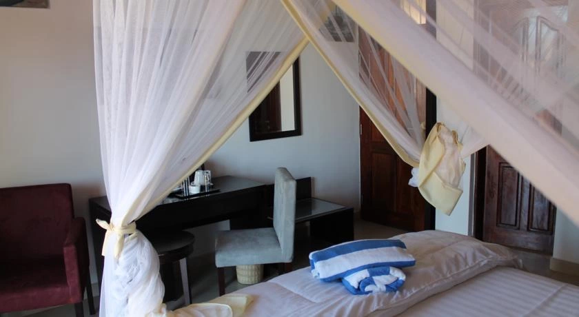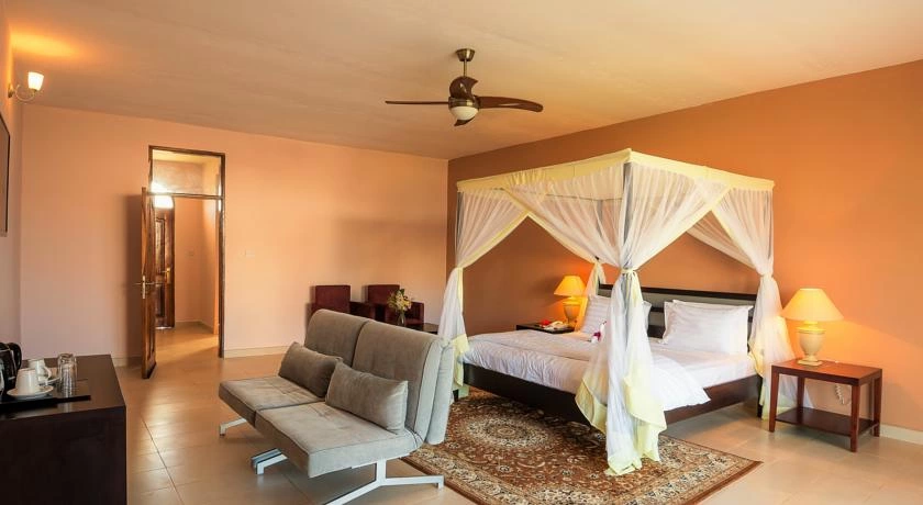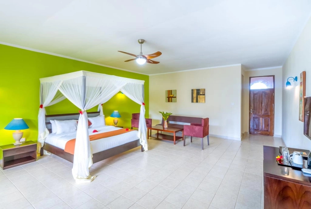 Кондиционер, вентилятор, телевизор с плоским экраном со спутниковыми каналами, сейф, письменный стол, гостиная зона, москитные сетки, ванная комната с душем, бесплатный Wi-Fi, ежедневная уборка номера.