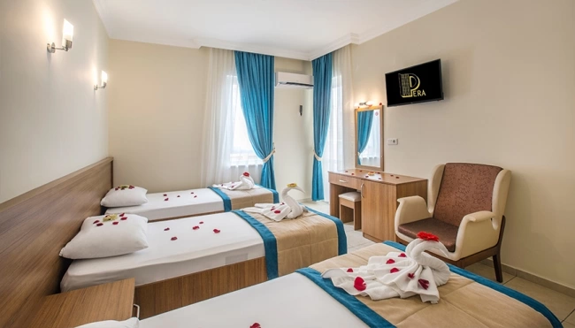 Готель Pera Hotel Alanya розташований в 5 хвилинах ходьби від центру міста і в 600 метрах від пляжу. Рекомендований для спокійного сімейного відпочинку з дітьми. Складається з одного 6-поверхової будівлі з ліфтом. Побудований в 2007 році, повністю оновлений в 2019 році. Загальна площа готелю становить 950 м2.