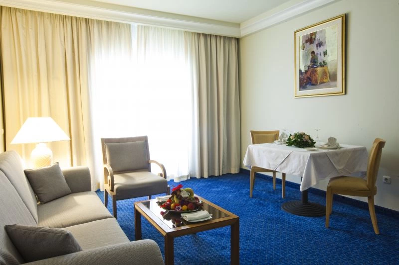 Собственная ванная комната, ванна или душ, фен, телефон, кондиционер, Wi-Fi (платно), спутниковое ТВ, мини-бар, сейф (бесплатно).