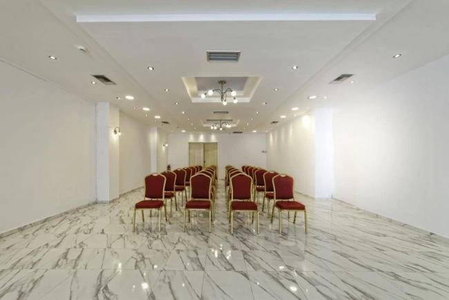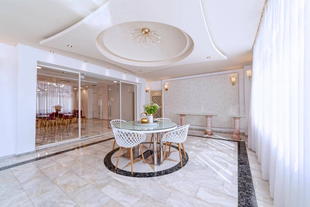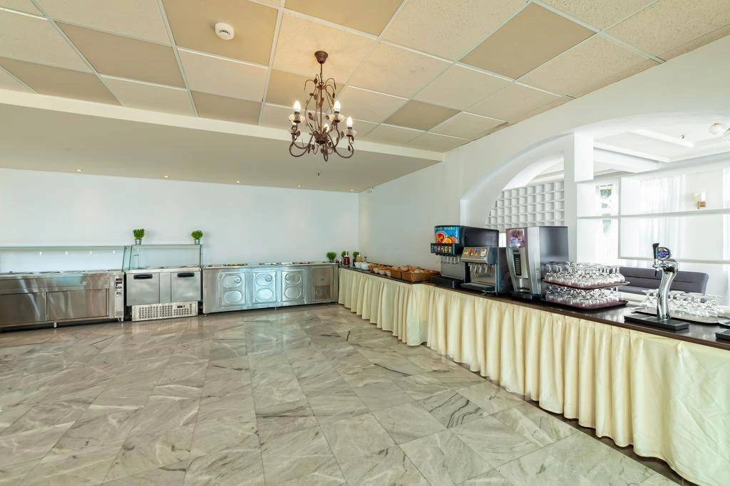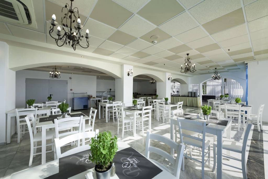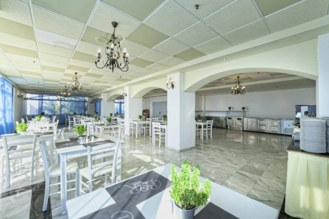 Сніданок «шведський стіл» подається в головному ресторані курортного готелю. У барі біля басейну Aqua Marina можна замовити освіжаючі коктейлі, а в готелі організовуються вечори грецької культури з традиційною музикою.