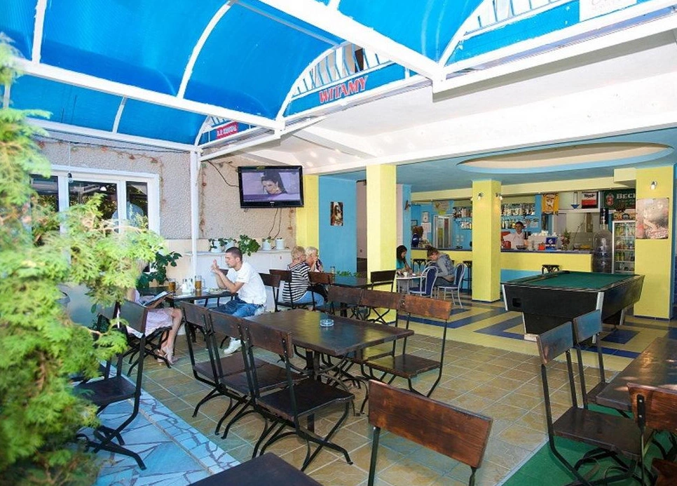 Ресторан на першому поверсі на 90 місць. Літній сад з кількома більярдними столами. Супермаркет. Велика тераса на останньому поверсі з видом на море.
