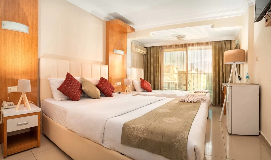 В номерах представлено: индивидуальный кондиционер, спутниковое ТВ, музыкальный канал, мини-бар (пустой), интернет, ванна, фен, джакузи, балкон, дополнительная раскладная кровать (по запросу).