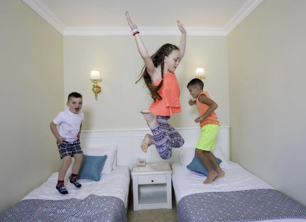 Відділення для дітей у басейні для дорослих (2 відділення в басейнах без підігріву), дитячий клуб (з 3 до 12 років), водні гірки, дитячий куточок в ресторані.