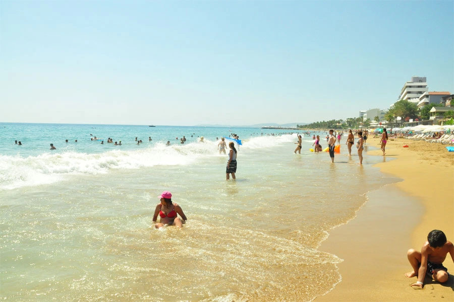 Пляж знаходиться в 200 м від готелю, через дорогу, по підземному переходу. Протяжність пляжу становить 150 м. Душ, кабіни для переодягання. Захід в море — пісок. Бар на пляжі (напої 12.00-16.00).