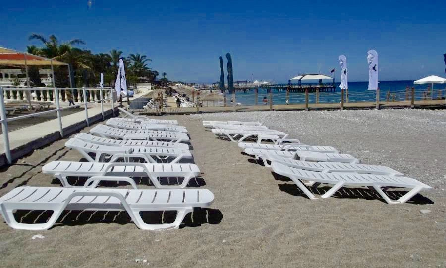 Пляж в 50 м. Між пляжем і готелем проходить автомобільна дорога, підземного переходу немає. Довжина – 50 м.