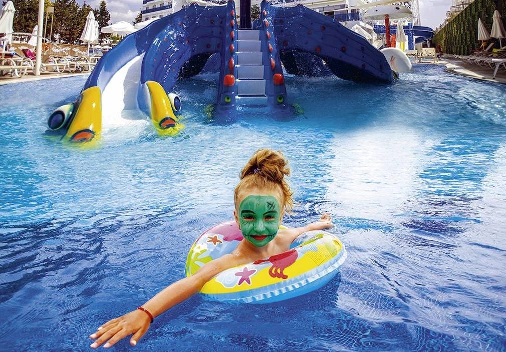 Дитячий відкритий басейн 30 м2, критий басейн 25 м2, 1 водна гірка, міні-клуб для дітей 4-12 років (в літній сезон), прокат дитячих колясок — за запитом (на ресепшн), дитячі горщики (платно). В основному ресторані можна скористатися блендером і мікрохвильовою піччю.